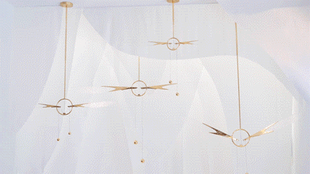 场馆内最醒目的装置,莫过于大金空调联合设计师罗黛诗与谭志鹏打造的“云间 Air Home”。设计师通过铜管的艺术变化,展现微风拂过的树梢、流动斑驳的光影、掠过水面的蜻蜓这些自然界的美好瞬间,创造出一个正在呼吸的时空。展现纯净的空气,传递自然的感受。