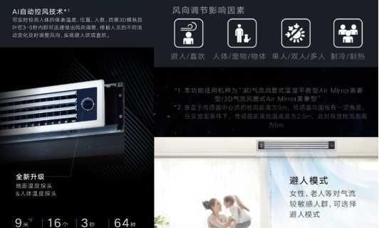 这次大金突破性将AI智能技术应用于空调领域,为空调系统及售后服务全面再赋能。AirMirror黑奢系列部分产品*承载AI自动控风技术,自动识别人员所在位置并于3-5秒内因时制宜地快速调整气流方向,64种百叶出风组合实现气流控制,无论单人或是多人环境也可轻松应对用户需求,解决由于传统中央空调出风口不便调节导致的风向无法自由改变的用户使用痛点。