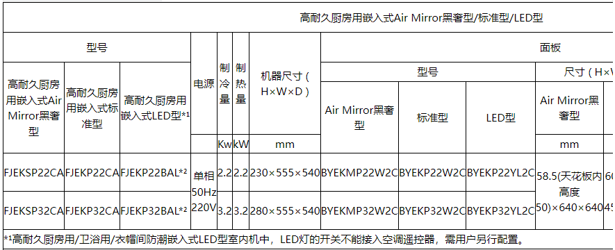 高耐久厨房嵌入式标准空调