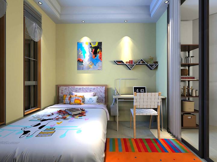 儿童房的色彩运用大胆活泼,设计师把任何一个空间都设计的尽量宽敞,即是狭小的儿童房。