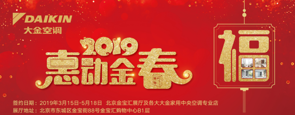 活动地点:北京·金宝汇·大金综合提案展示厅及大金Proshop家用中央空调专业店