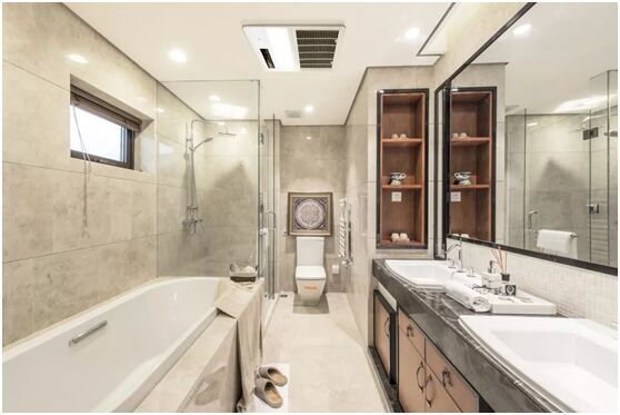 大金金制全效家用中央空调-卫浴专用空调,嵌入式的设计,美观不占用空间,主要有制冷、制热、换气、干燥四大功能,不仅能让浴室保持干燥和清爽,还能让卫生间冬暖夏凉。