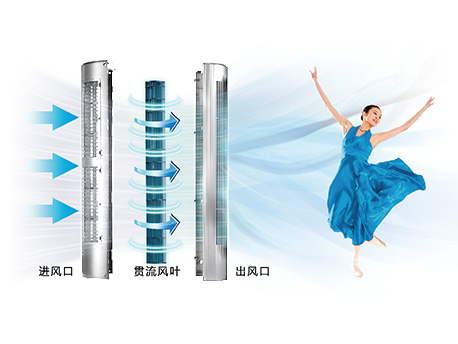 创新运用直立式贯流风叶,让送风更均匀、更顺畅、得柔和。