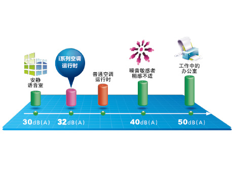 根据环境温度自动调整电机转速,实现室内机噪音低至32分贝,让孩子专心学习,让老人安心休息。 #注:32分贝,指i酷空调50机在静音档运行时的噪音值。