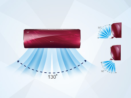 原创大导风板与连杆结构设计,有效增大导风板上下旋转的角度,对气流进行分流导向,实现上下180?大广角扫风,淋浴式制冷,地毯式送暖,无感送风,舒适更健康。