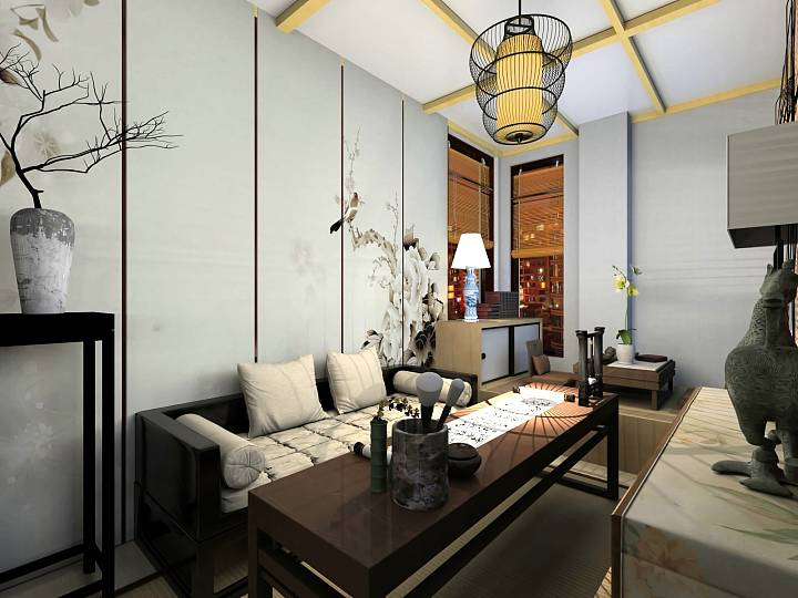 主人爱好读书写字,考虑到主人长时间端坐太累,特把座椅改成带有厚软包的长坐凳,可坐可卧。
